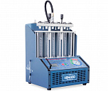 Стенд для проверки и промывки 6 инжекторов в ультразвуковой ванне. Автоматический слив тестирующей жидкости. Работает от сжатого воздуха. Имитация работы форсунок происходит с помощью встроенного электронного блока управления форсунками. В комплект поставки входит ультразвуковая ванна объемом 2,0 литра с подогревом и мощностью генератора 60 ВТ.