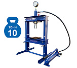 Усилие 10 тонн. Настольный. Ручной. Для запрессовки подшипников, деталей машин, втулок и т.п. в автосервисе, мастерских по ремонту лодочных моторов, велосипедов и т.п. Гидроцилиндр с пуансоном имеет возможность перемещения по всей ширине рамы. Контроль усилия – визуально по шкале манометра. Интервал пуансона 135 мм. Рабочее окно: 400 x 350 мм.
