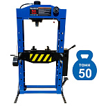 Усилие 50 тонн. Пресс гидравлический. Привод: ручной. Две скорости подачи пуансона. Первая скорость для быстрой подачи штока к рабочей поверхности, вторая (медленно) для выпрессовки. Применяется для запрессовки подшипников, деталей машин и механизмов в гаражах, автосервисах и СТО.