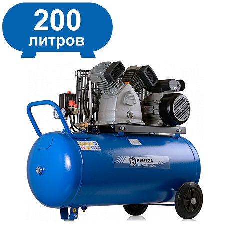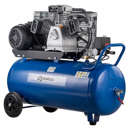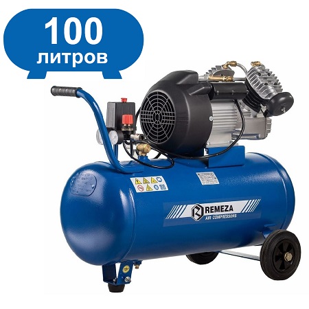 Воздушный поршневой компрессор REMEZA с ресивером 100 л, масляный, двухцилиндровый, мощностью 2,2кВт, Напряжение 220В. Производительностью 400 л/мин с коаксиальным приводом применяется в строительных, автосервисных и медицинских работах.