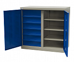 Шкаф инструментальный серии «PROFFI» предназначен для хранения оснастки, приспособлений и инструмента на рабочих местах в мастерских, цехах и других производственных зонах. Шкаф изготовлен из листовой стали и обеспечивает надежное запирание дверей ригельной системой. Шкаф содержит четыре ящика, одна перегородка и восемь полок. Размеры:(ВхШхГ) 1800x1000x500 мм. Масса: 71,4 кг. Нагрузка на полку – не более 100 кг. Нагрузка на перекладину - не более 15 кг. Суммарная нагрузка на шкаф не более 400 кг.