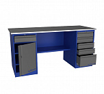 Двухтумбовый. Допустимая нагрузка на столешницу 1000 кг. Опорные элементы выполнены сварными из холоднокатаной стали. Для выполнения сборочных, ремонтных, слесарных, монтажных и других видов работ на производстве, в сервисных центрах, мастерских, гаражах, а также для обучения технологии в учебных заведениях. Комплектуется полкой-стенкой, расположенной под столешницей для удобного размещения габаритного инструмента и оснастки. Размеры верстака: 855x1796x696 мм. Вес: 125 кг. Поставляется в 4 комплектациях на выбор.