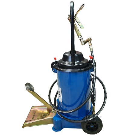 Ручной привод. На колесах. Продавливает «ЗАБИТЫЕ» тавотницы. Давление смазки 350-400 Атм. Пистолет с наконечником под тавотницы производительность 400 г/мин. Для шприцевания шарнирных соединений (тавотниц, крестовин, подшипников, цепей). Применение везде (цех, поле и т.п.). Заправка смазкой из ведра, тубы, бочки.Вес: 9 кг, длина шланга 2,5м. Емкость бака 13 кг.