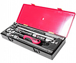 Набор ключей рожково-накидных в прочном презентабельном боксе (14 предметов). В комплекте: ключ рожково-накидной с трещоткой: 8, 10, 11, 12, 13, 14, 15, 16, 17, 18, 19 мм. - 11 шт и адаптеры 1/4", 3/8", 1/2" - 3 шт.