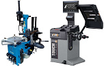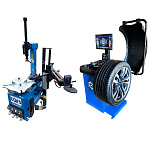 Комплект из автоматического шиномонтажного станка TS-3226А. Для дисков: 11÷24”. В комплекте: полноценная 3-й рука для работы с жесткой и низкопрофильной резиной RUNFLAT. + встроенный бустер  24 литра (взрывная подкачка) + пистолет для подкачки шин + монтажка + регулятор давления с влагоотделителем и манометром. + Proxy-8-3 автоматический балансировочный станок для колес с диаметром диска 9-28 дюймов, при ручном вводе до 30 дюймов и шириной до 20 дюймов. В комплекте: монитор SVGA + кожух с автозапуском + клещи + кронциркуль + пневмоприжим + набор конусов + лазерная навигация + электромагнитный тормоз + ультразвуковой датчик ширины.