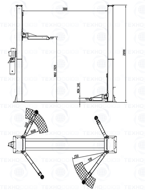| Расстояние между колонами подъемника, мм. | 3000 |