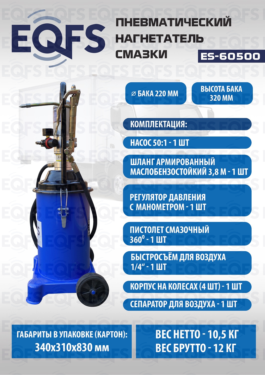 Технические особенности пневматический нагнетатель смазки ES-60500: