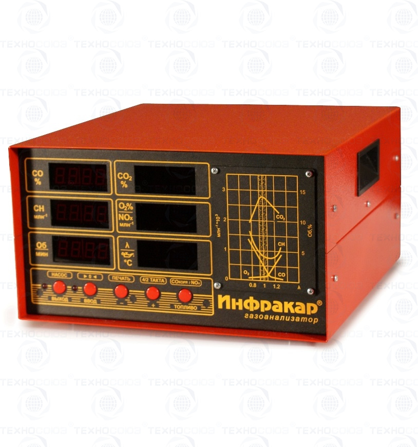 Автомобильный 5-ти компонентный газоанализатор «Инфракар 5М-3.01 предназначен для измерения объемной доли оксида углерода (СО), углеводородов (CН) (в пересчете на гексан), диоксида углерода (СО2), кислорода (О2), окислы азота(NOx) в отработавших газах автомобилей с бензиновыми двигателями. Лямбда + Тахометр + RS-232 + Автослив конденсата + Автоподстройка нуля + Работа с ЛТК и мотортестерами. Внесен в Госреестре средств измерений РФ, Республики Беларусь и Казахстан.