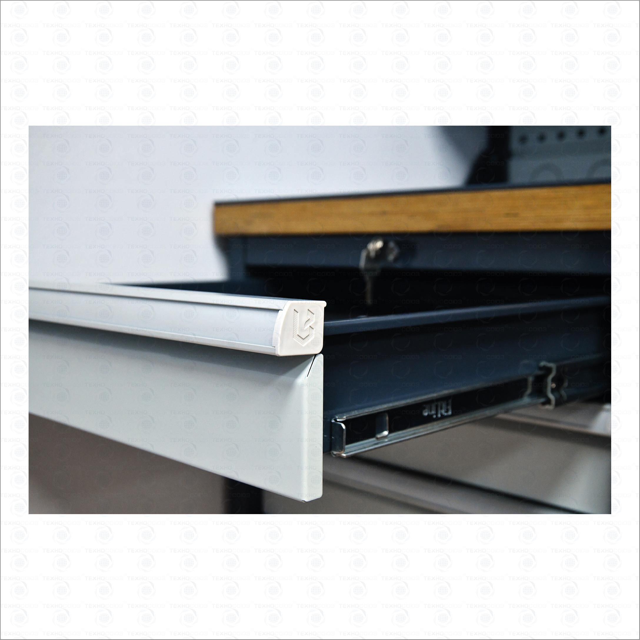 • наличие в тумбах с ящиками специальной системы антиопрокидывания, которая ограничивает выдвижение остальных ящиков тумбы, если один из ящиков выдвинут;