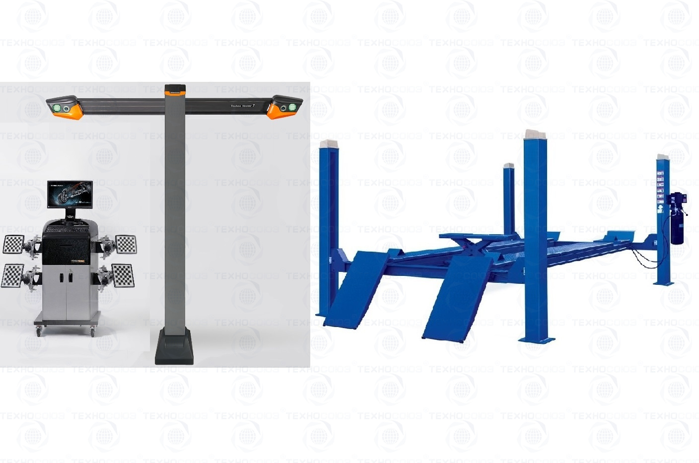 Комплект F4D-4 Подъемник 4-хст. г/п 4т,эл/гидр. с траверсой+T 7202 TAB Стенд сход-развал 3D