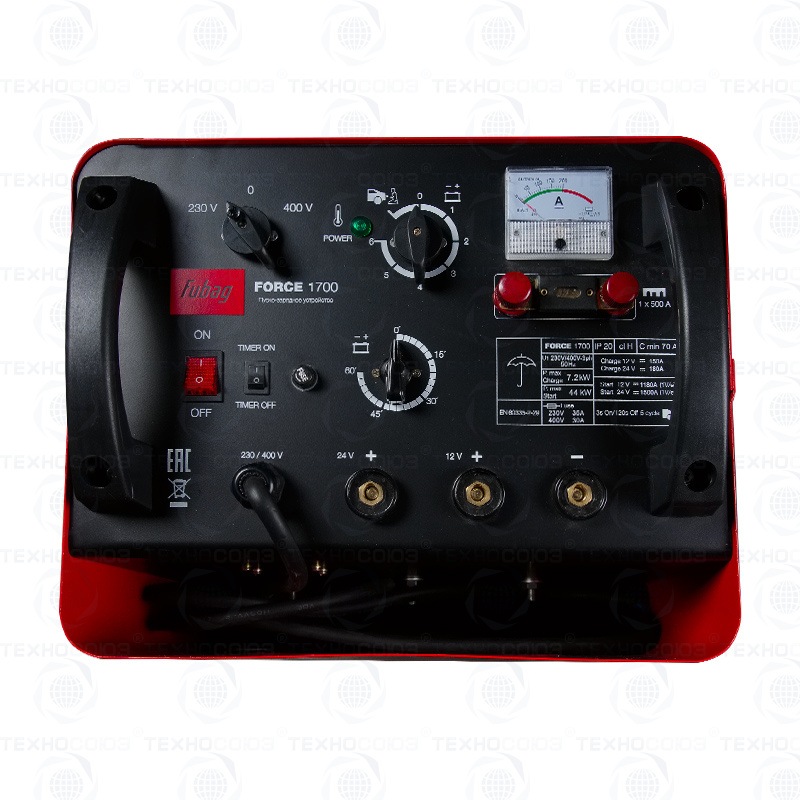 FORCE 1700 - это мощное пуско-зарядное устройство FUBAG, которое работает на напряжении 380 / 220 В при максимальном токе пуска 680 А и токе зарядки 50-280 А. Устройство предусмотрено для использования в течение всего года в крупных автохозяйствах для быстрой зарядки кислотных аккумуляторов и запуска всех типов легковых автомобилей, фургонов, грузовиков или тракторов.