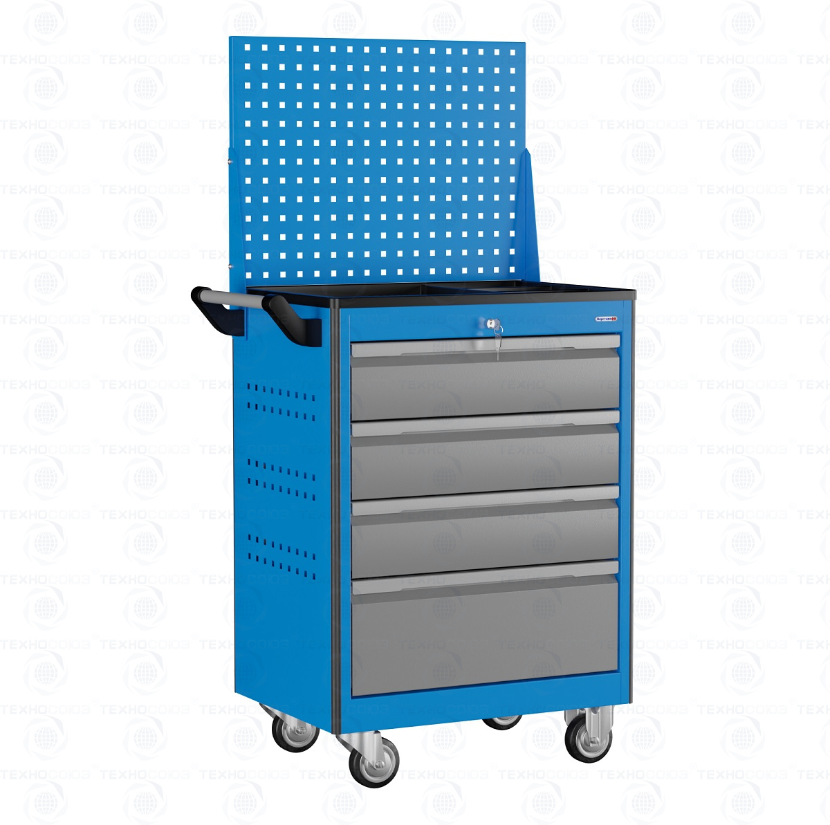 Тележка инструментальная TNC 950.4 Р с 4 выдвижными ящиками и перфорированным экраном.Предназначена для хранения и транспортировки к рабочему месту инструментов, приборов и другой оснастки, необходимых для работы на сервисных и слесарных участках, а также в цехах заводов и на промышленных предприятиях.