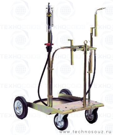 Установка для раздачи пластичной смазки. Комплектация: тележка, насос пневматический, шланг 1,5м, Раздаточный пистолет ручной.